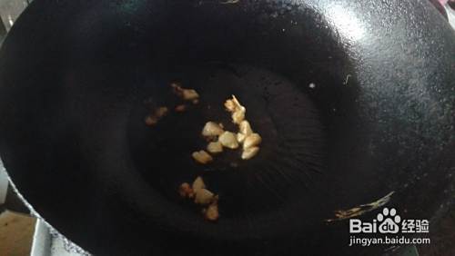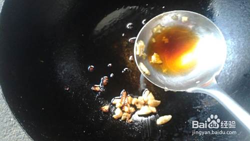 另起锅,在锅中倒入适量植物油,放入蒜碎翻炒,等蒜碎炒至变黄,出蒜香味,再倒入酱油和料酒爆锅。