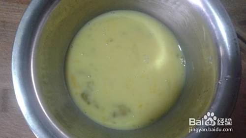 将鸡蛋打入盆中,用筷子搅打成鸡蛋液,备用。