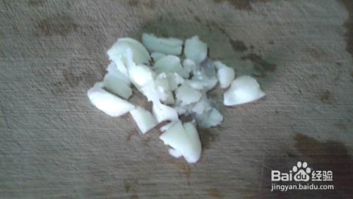 蒜去皮,用刀背拍扁,切成蒜碎,备用。