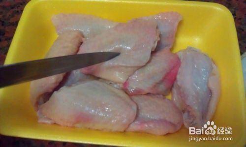 用个小刀尖扎扎鸡翅,这是为了让鸡翅更进味。