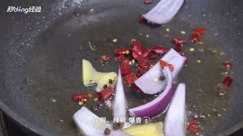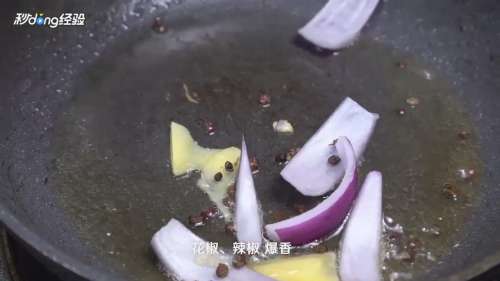 3放入姜、洋葱、花椒。