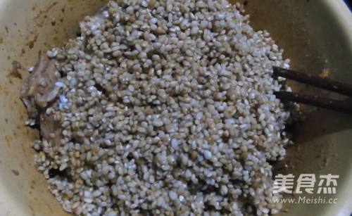 5然后把糯米放入排骨盆中