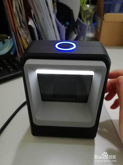 与电脑连接,在听到滴滴声之后,平台进入工作模式,平台上方按钮为蓝色时为普通工作模式,普通工作模式下可识别一维条码和二维条码。