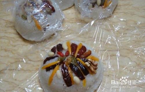 把碗倒扣在保鲜膜上包好,如果不是当日吃,就进入冰箱冷藏,时间久一点的直接冷冻