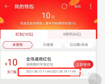 红包可以在我的-红包特币里看到,点击进去可以红包的使用期限,在规定期内都可以购买都可以抵扣。