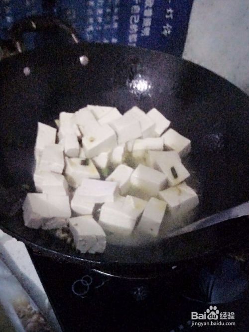 翻炒后快速放入豆腐翻炒(葱姜不能翻炒时间长容易糊)