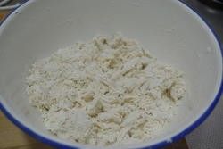2.加水和成较硬的面团,先慢慢揉成絮絮