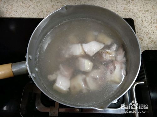 煮一锅水把猪尾进行汆烫,去除血沫。