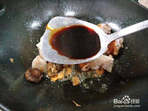 猪尾一起回锅,加入一匙耗油,两汤匙酱油,半汤匙老抽,一点盐和一点糖,加入适量水,翻炒均匀,煮开。