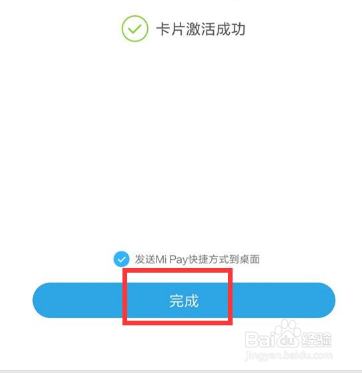 开卡成功以后,可以把Mi Pay快捷键添加到桌面,最后点击“完成”。