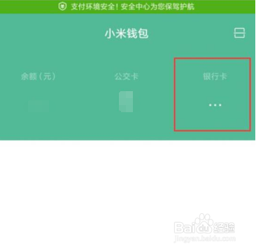 进入到小米钱包界面,点击右边的“银行卡”三个点。