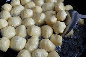 待体积膨大,颜色嫩黄即可出锅。放在沥油勺上,洒少许盐,颠勺!让每一块油豆腐沾上一点点盐,真的只要一点就好!!!