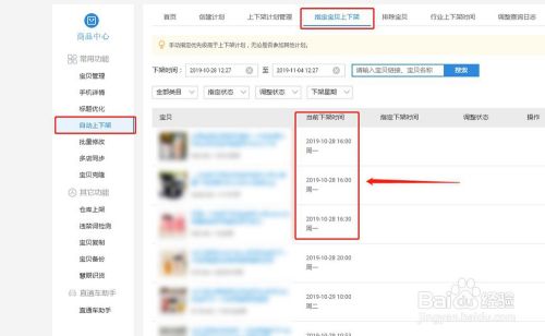 在指定宝贝上下架页面可以清楚的看到每一款宝贝的当前下架时间,精确到年月日周时。
