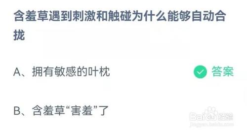 问题二:含羞草遇到刺激和触碰为什么能够自动合拢