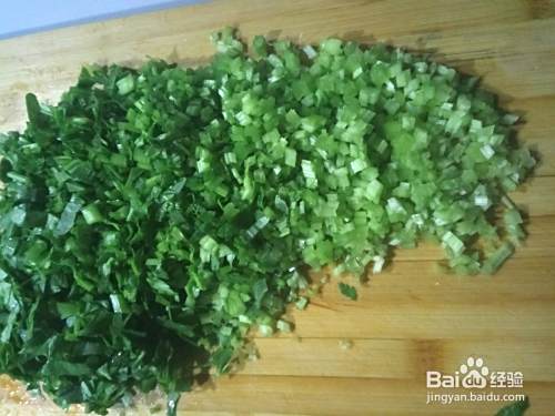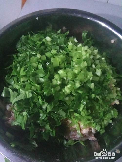 芹菜、香葱放进肉里搅匀即可。(芹菜不需要挤干水分)
