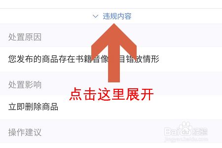 比如上图显示小编放错了商品类目,点击违规原因处还可查看违规详情,见图一......如果处置的商品太多,那么点击违规内容展开还可以看到具体下架的商品图片;