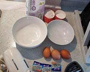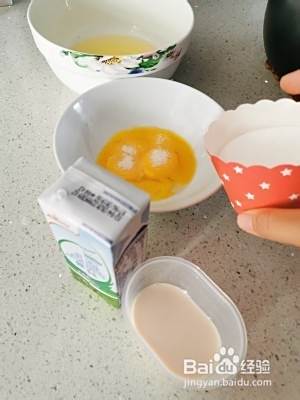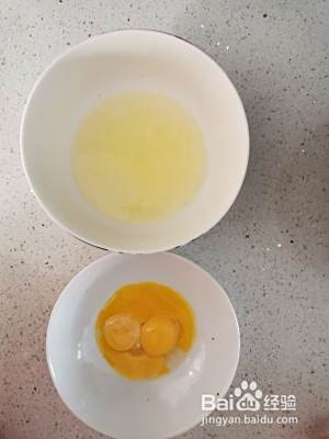 准备好如图食材和器皿。器皿必须干净无水无油。鸡蛋最好是冷藏室里刚取出来的。