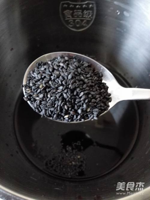 3放入3汤匙黑芝麻,黑芝麻是提前炒熟的