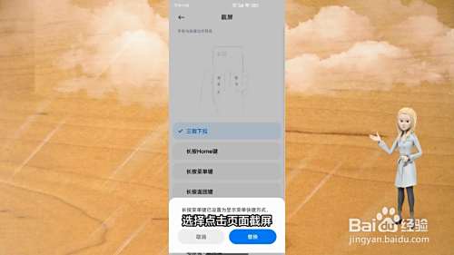 选择点击页面截屏,打开长按菜单键截屏就可以了。
