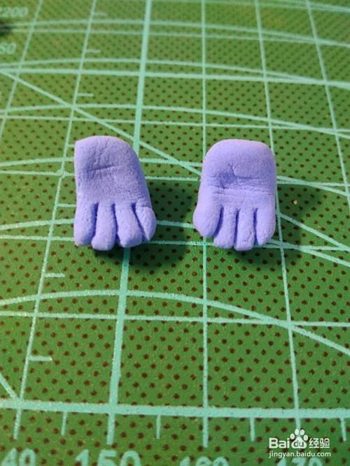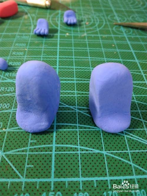 继续用蓝色粘土制作腿脚和手