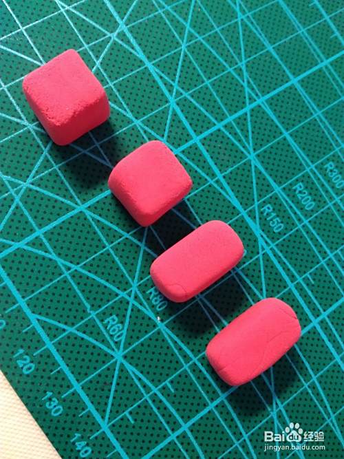 制作四肢,蓝色、白色、红色的粘土根据制作部位的需要,分别捏成大小不一的方块,捏好后放一放,否则太软容易变形