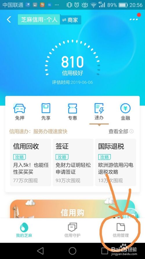 2第二步: 点击右下角的“信用管理”按钮,然后选择最上面的“个人信用”,接下来你要完善这些信息,越完善的信息会让你的信用分越高。