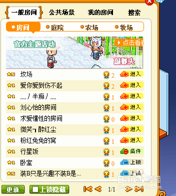 点击地图,打开选择“一般房间“,进入你想进入的房间
