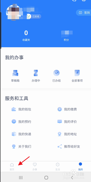 实名认证完成后,点击左下角的首页,点击进入