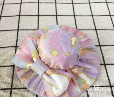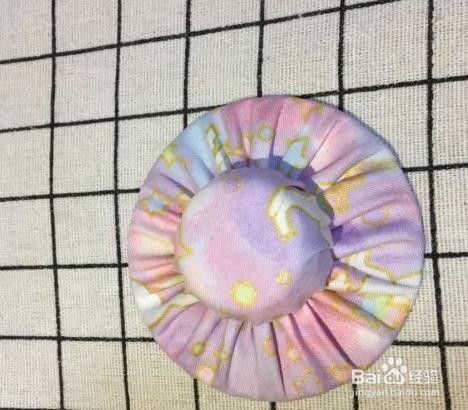 准备一般大小的瓶盖,双面胶粘无纺海轿布,这样帽子顶更圆润立体