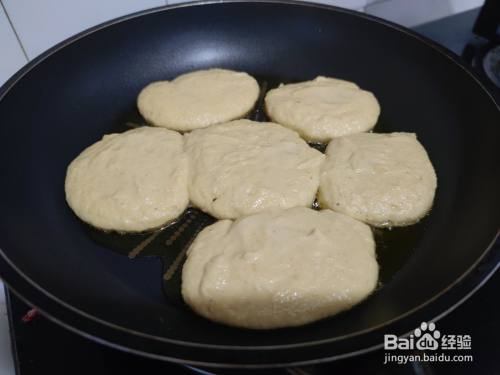 开小火,平底不粘锅倒入食用油,取适量面糊放入锅中做成饼状。