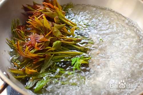 新鲜的香椿芽焯水,焯水可以去除香椿芽中的硝酸盐和亚硝酸盐。将香椿芽倒入开水中,快速翻动,颜色变绿,就可以了。马上放入凉水中,放凉之后沥干水分,摊开晒干表面水分,放入保鲜袋,扎紧袋口,放入冰箱冷冻室,储存一年是没问题的。