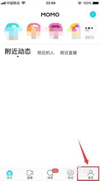 首先打开手机里的陌陌,点开进入到首页之后,打开 更多 页面,如下图