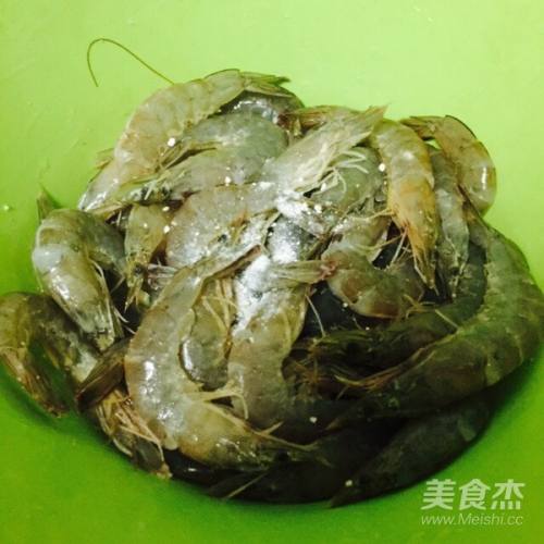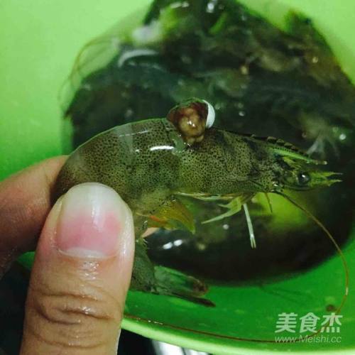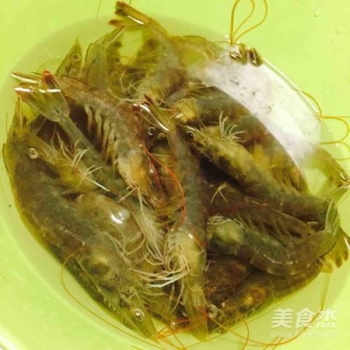 2剪开虾背,抽出虾线,剪掉虾脚,