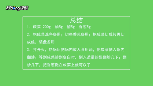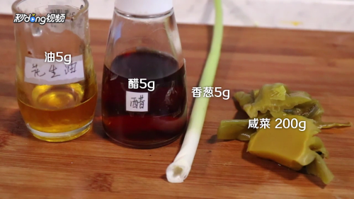 食材准备咸菜200g,油5g,醋5g,香葱5g。