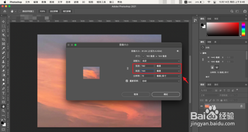 在Photoshop软件中,可以通过在图像界面,在图像大小那里,设置照片符合宽度为192像素,高度为144像素,就可以完成修改实现。