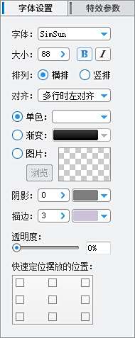 在视频预览框左侧“字体设置”栏目,可对文字的字体、大小、横排或竖排排列方式、颜色等等进行设置。