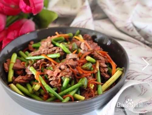放入蒜薹,胡萝卜丝,加入盐与生抽,翻炒至熟即可