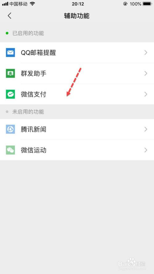 在【辅助功能】点击【微信支付】选项。