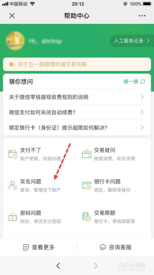 在【帮助中心】点击【实名问题】。