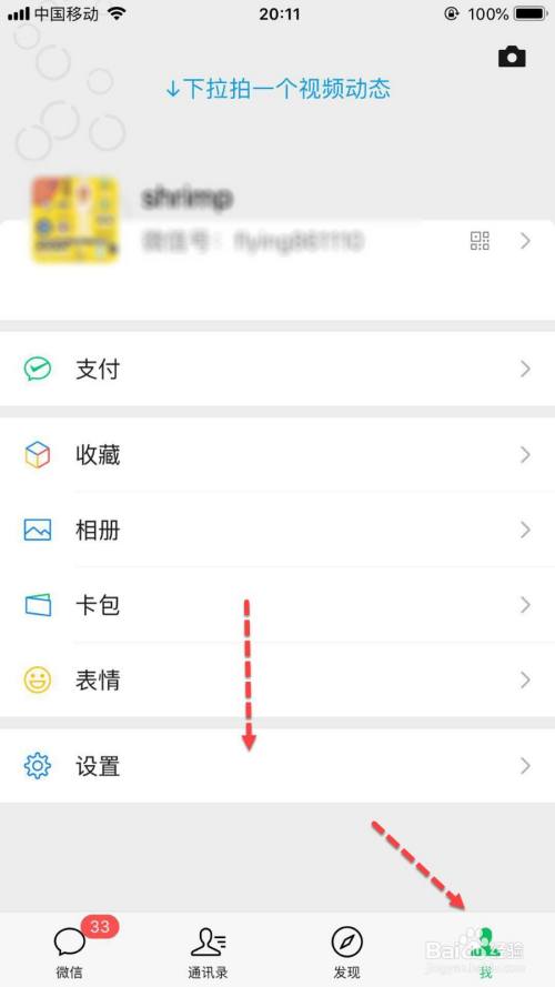 打开微信点击【我】--》【设置】。