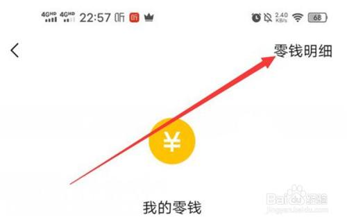 在我的零钱窗口中,点击右包边上角的【零钱明细】打开。