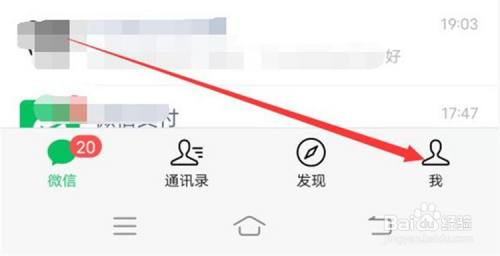 在微信软件窗口中,点击底部右侧的【我】图标打开。