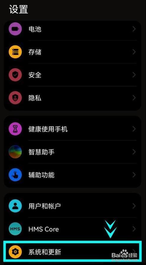 打开华为p50手机【设置】功能——选择【系统和更新】功能