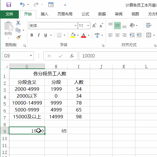 我们来看第一个列子,当我们在G9的位置输入10000时为什么返回65,首先我们要知道未排序的比较方式为二分法比较,因为分段这一列共5个数据,那么第一次比较,会比较(5+1)/2取整后也就是第三个数9999,发现10000大于9999,那么第二次比较,会比较大于第3个数所在行数的第4个数和第5个数,同样对比的是(2+1)/2取整后对比第4个数4999发现大于4999但是又小于14999,所以返回4999对应的65