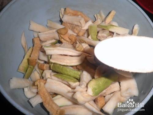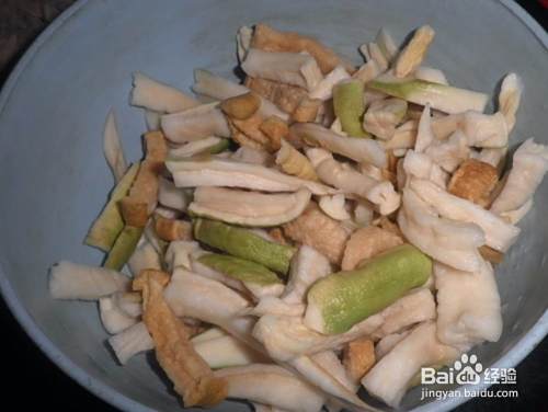 1.晒好的萝卜干用热水泡软。选择晴天做哟,如果室内窗台上晒,很可能2,3天才可以晒好。