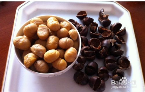 陆续从锅中取出栗子,剥壳,很容易的就能剥出整颗的栗子仁,用这种方法,没有多长时间就可以将栗子剥完了。