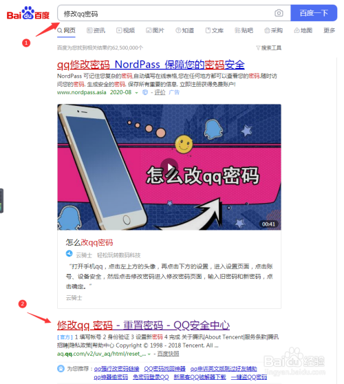 打开百度,搜索“修改qq密码”;