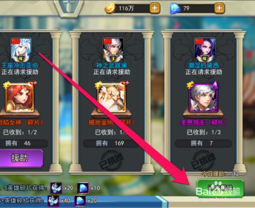 点击求助按钮以后,可以选择需要英雄的碎片。