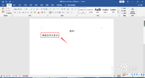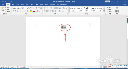 打开Microsoft Word 2016,在首行输入“通知”。