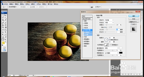 继续打开图层,打开图层样式,勾选斜面和浮雕,大小设置为38像素,点击确定,如图